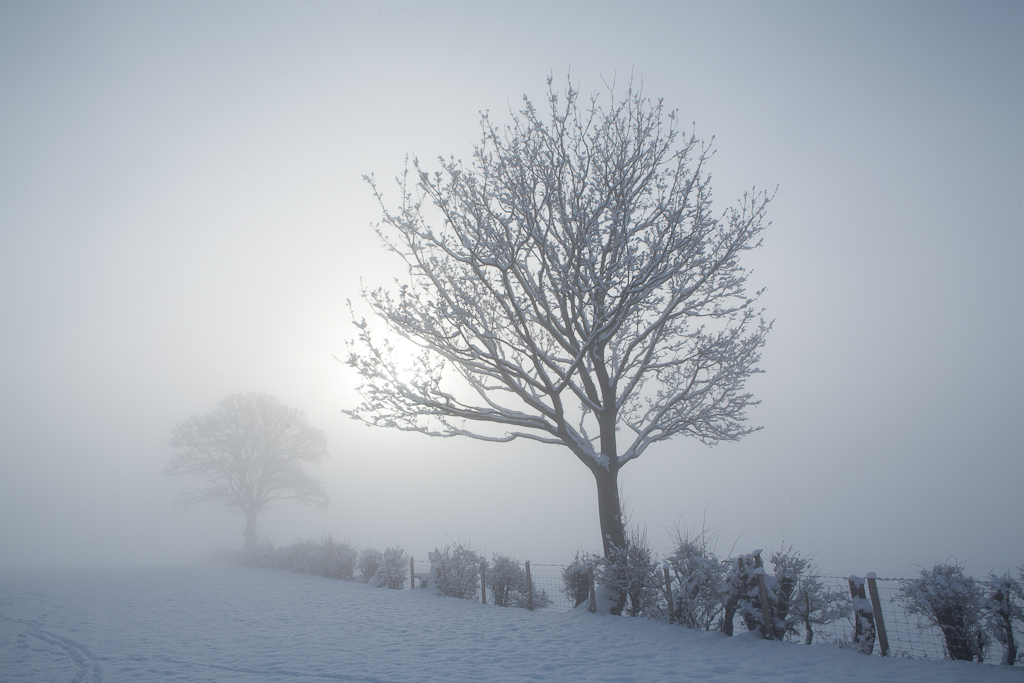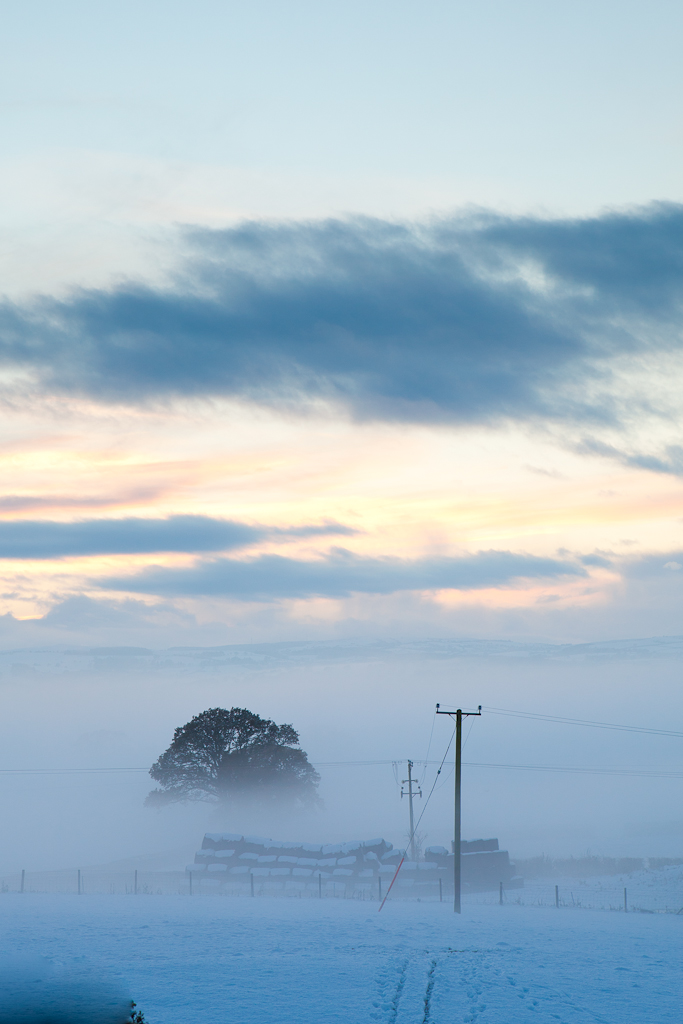 Amazing sight from the window this afternoon. A low mist formed in the base of the valley, and slowly filled it, bottom up. This is taken midway through, 10 minutes later the tree was covered.